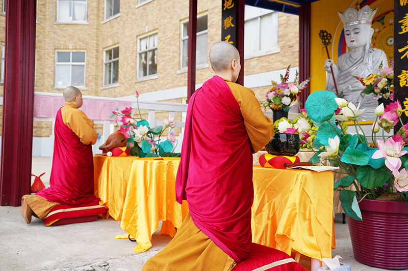 地藏像前虔誠誦經,